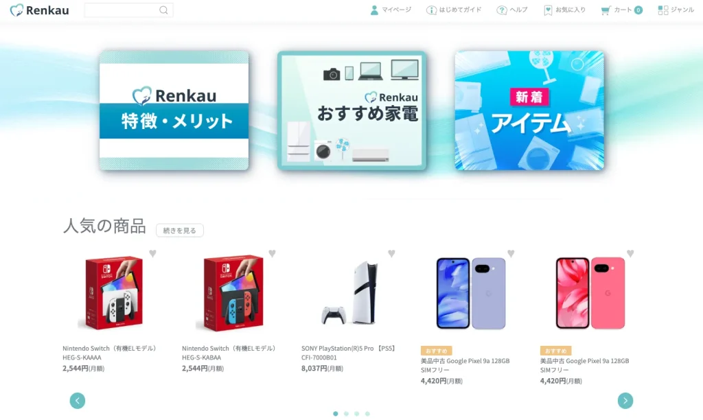 最後にご紹介する解決策が『もらえるレンタルRenkau』です。