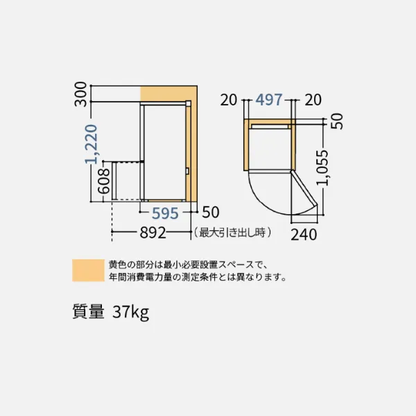 - 本体サイズ:約 幅497mm × 奥行595mm × 高さ1,120mm