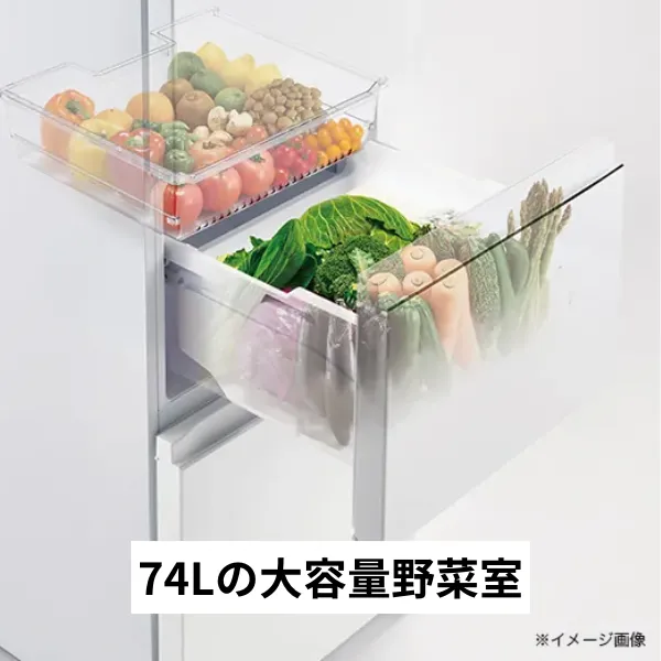 野菜室は独立設計で、湿度管理により葉物や果物の鮮度を長持ちさせやすい構造になっています。