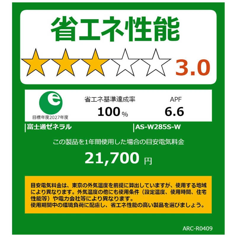 - 冷房時消費電力