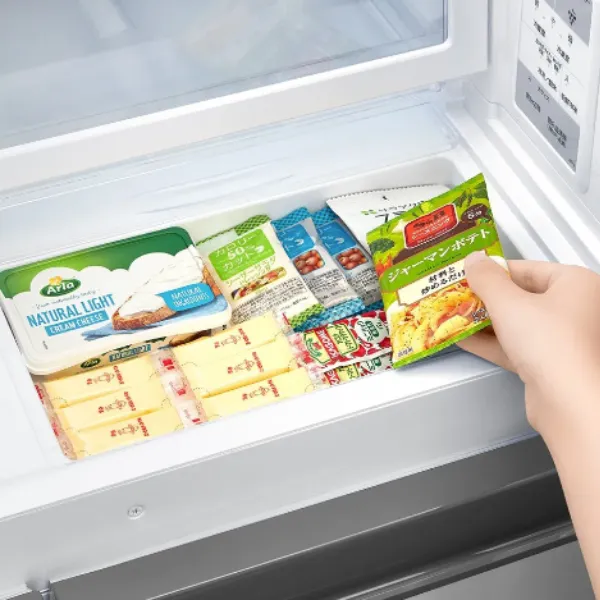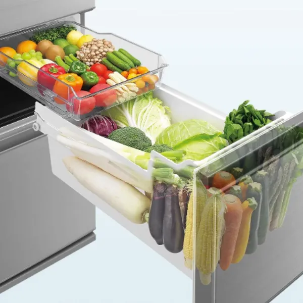 冷蔵室・野菜室・冷凍室のすべてにゆとりがあり、日々の食材保存から週末のまとめ買い、冷凍食品・作り置きのストックまで余裕をもって対応可能です。4人以上の家族や食材を多めに保存したい家庭に最適です。