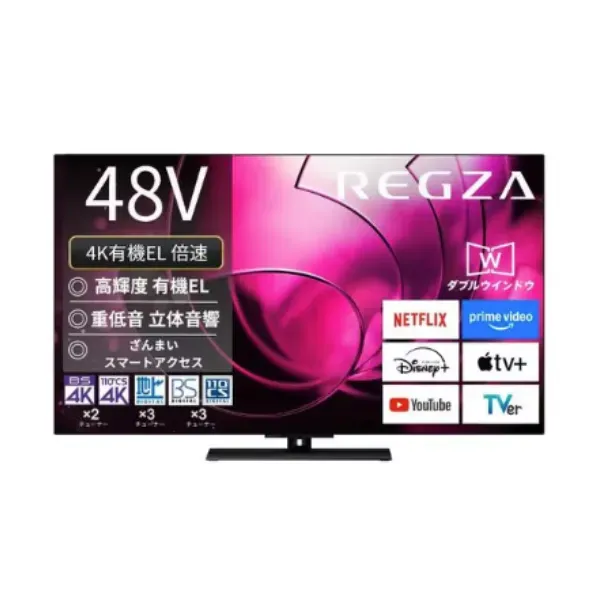 REGZA 48X8900R は、新開発の高コントラスト有機ELパネルと AI 映像処理、迫力あるサウンドシステム、チューナー内蔵、スマート機能、洗練されたデザインを備えた「ハイエンド4K有機ELテレビ」です。映画やライブ、配信動画まであらゆる映像コンテンツを高品質で楽しみたい人にとって、非常に満足度の高い一台と言えるでしょう。