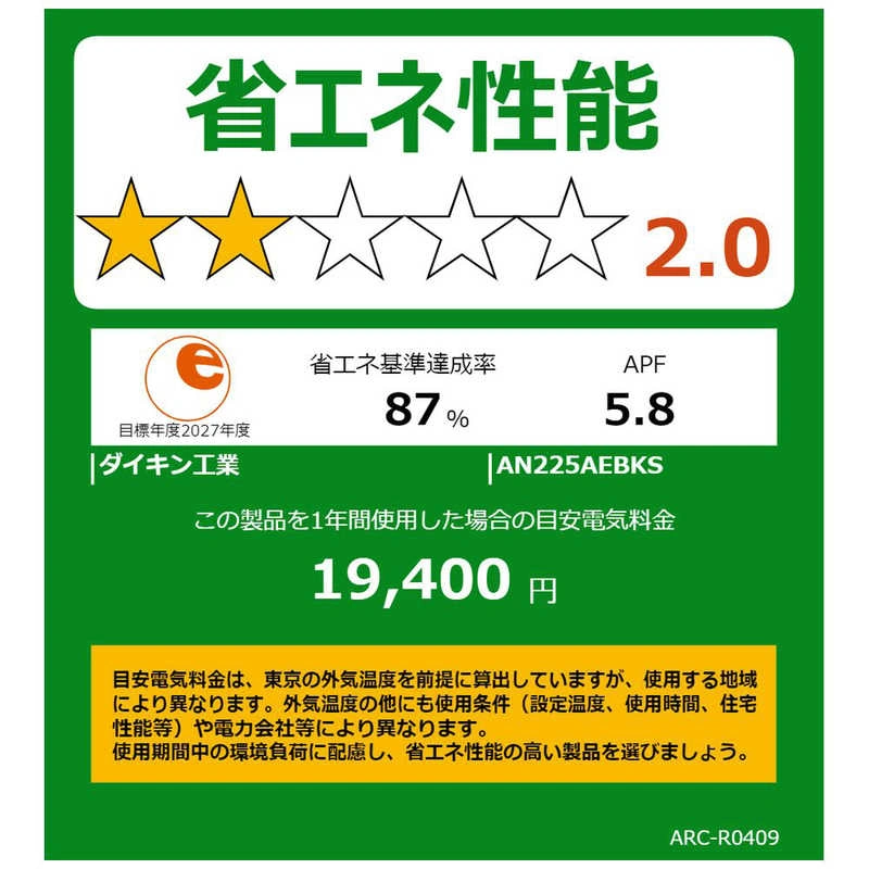 ダイキン DAIKIN エアコン EBKシリーズ おもに6畳用 (ビックカメラグループオリジナル) ホワイト AN225AEBKS-W