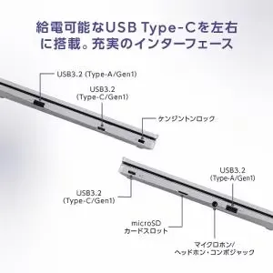 - USB3.2 Type-C×2、USB3.2 Type-A×2、microSDカードリーダー搭載