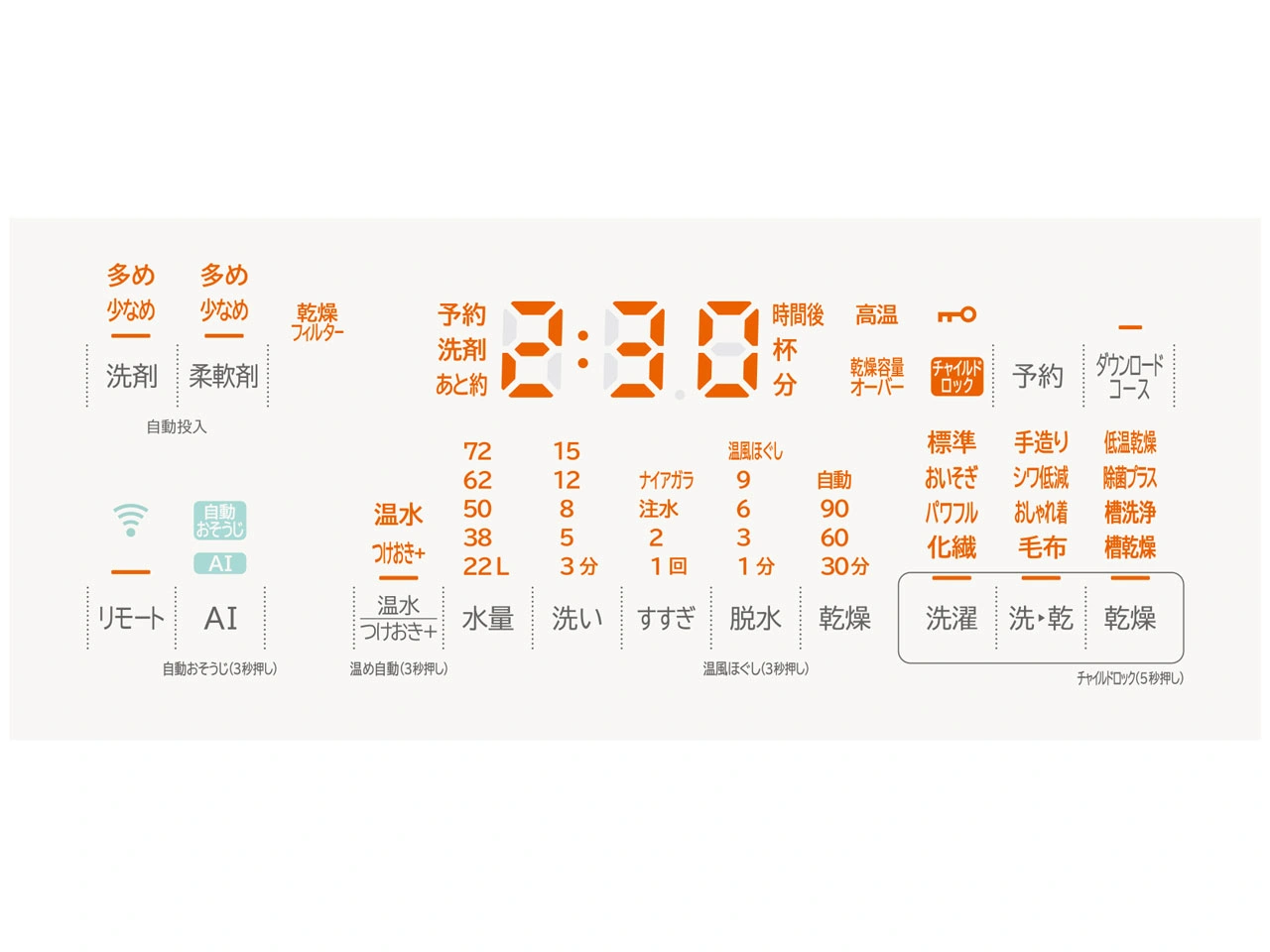 - 洗濯時目安:28.1円(50Hz/60Hz) 洗濯乾燥時目安:88.9円(50Hz/60Hz)