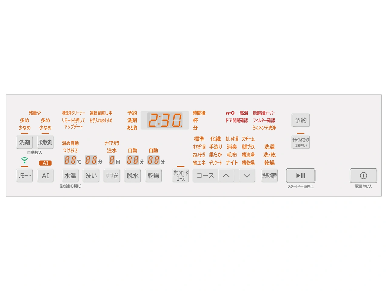 - 標準コース目安時間(洗濯時/洗濯乾燥時)